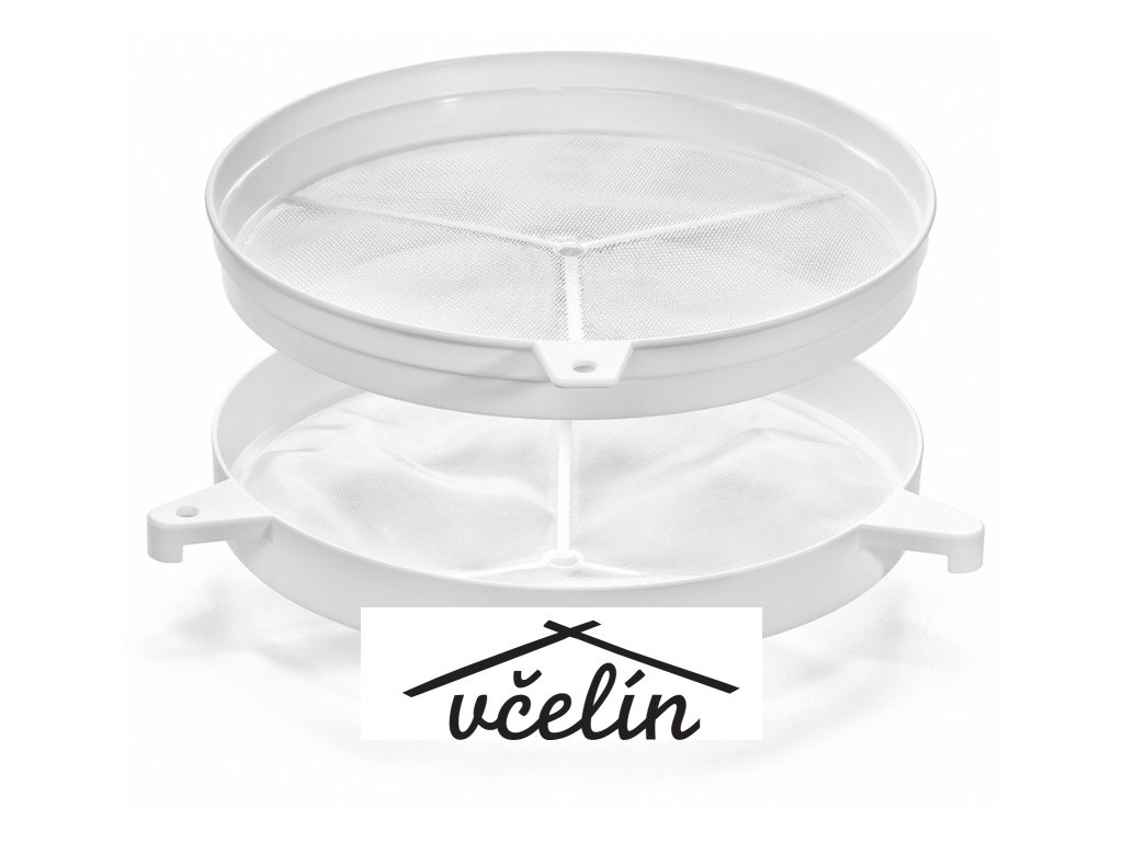 › Včelařské potřeby › Chovatelské potřeby › Včelařství › Práce s včelím medem › Síta a cedníky na včelí med › Cedník na med dvojitý vypouklý plast 33 cm