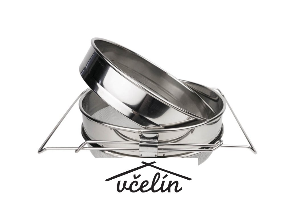 › Včelařské potřeby › Chovatelské potřeby › Včelařství › Práce s včelím medem › Síta a cedníky na včelí med › Cedník na med dvojitý vypouklý s úchyty nerez 24 cm